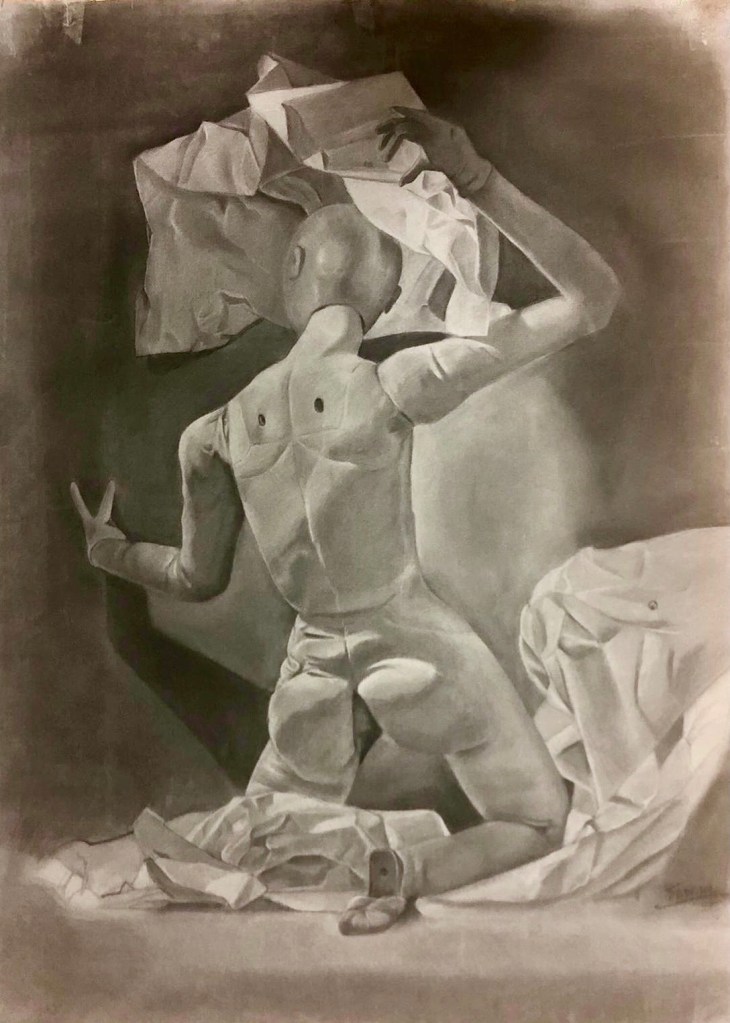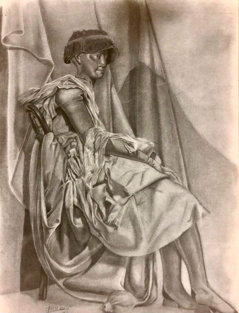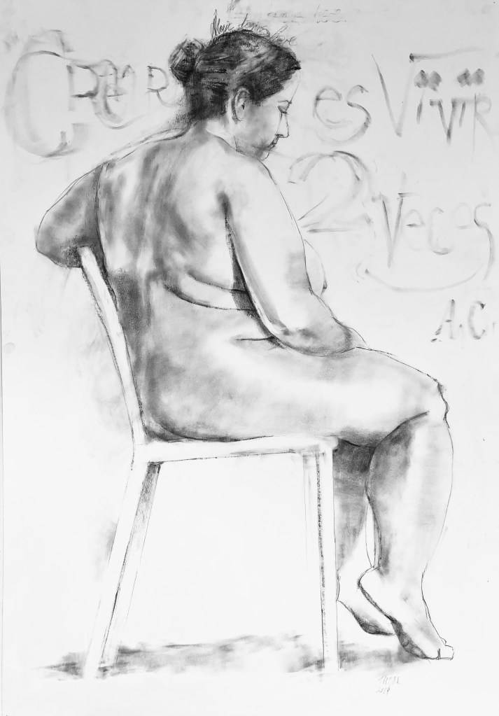 “Mujer y abanico.” Grafito sobre papel 70×100 cm. “ Woman with fan”. Graphite on paper.