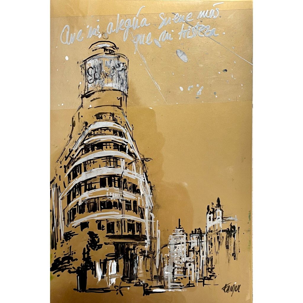 ”De Madri al cielo”. T. mixta / collage 71×46 cm. “From Madri to the sky ”. Mixed/ collage.