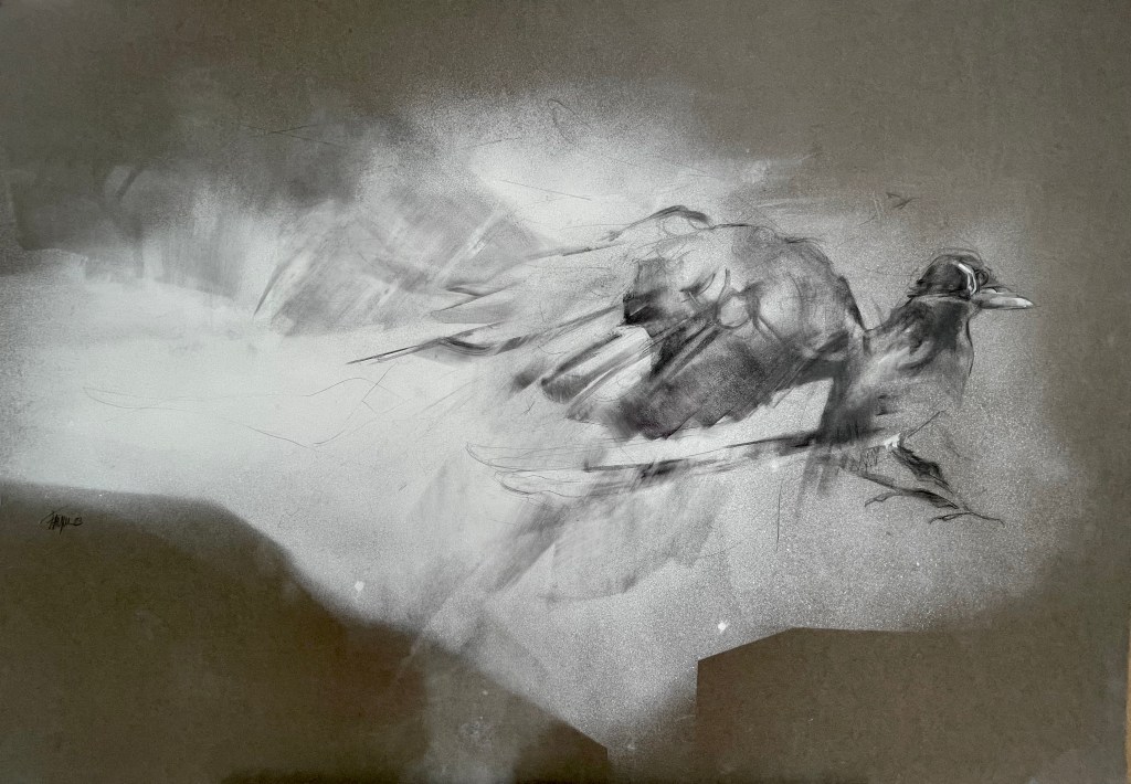 “Libre sobre gris”. trMixta/papel. 70 x 100 cm.